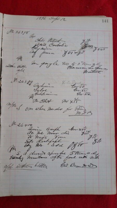 It contains hours and hours of fascinating information.  Occasionally Dr. Hackett had some assistance, like on May 24, 1895, you will see two signed orders from a Dr. J C Poissant.  On September 2, 1895 Dr. DuBois appears, and later Dr. Dodge, and a few others.