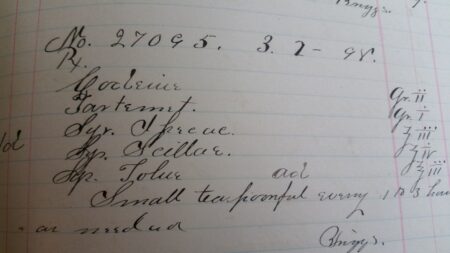 It’s a one hundred and twenty-one-page formulary or recipe journal from the practice established by Dr. J.M. Hackett spanning the period between October 17, 1898 to March 28, 1899. Obviously, you can expect to see great insight in the practice of medicine in the 1800’s.