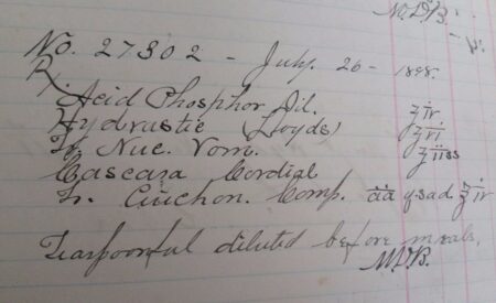 Such a formulary (recipe book) does show a lot of insight into the 1800’s lives and attitudes of Dr. Hackett and his patients.