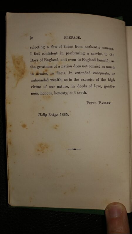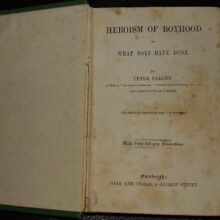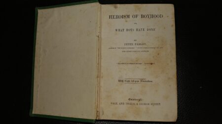 282 pages with eight full-page illustrations published by Gall and Inglis. Intended to depict the heroism of boyhood, and especially to exhibit the heroism of moral worth.