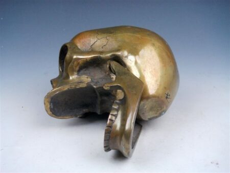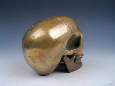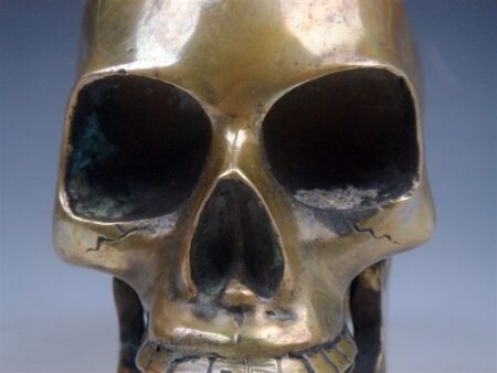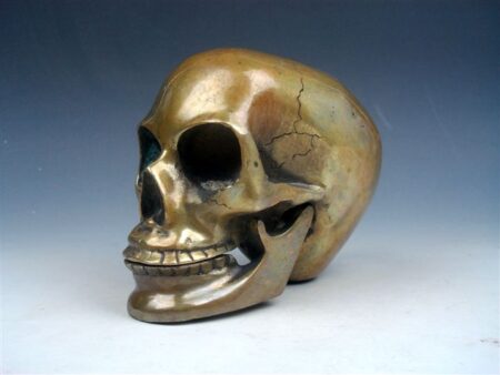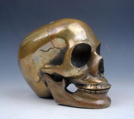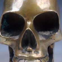 “Max” as I call him is a very nice antique, finely crafted solid brass human skull.