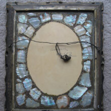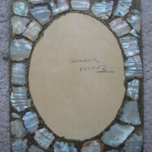 The photo is embossed onto glass with thin shell with some type of gold glitter used to fill in around the pieces. Not really sure what material it is but it looks really cool.