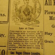 Group of vintage late 1800s newspapers overwhelmingly from Western regions, including Las Vegas, Kansas, and San Jose.