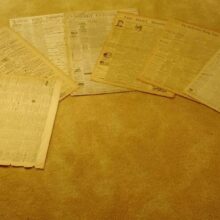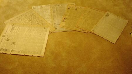 Newspapers measure about 26 inches in length and many are a mere page or two long. Great reads and artistic advertisements from a bygone era.